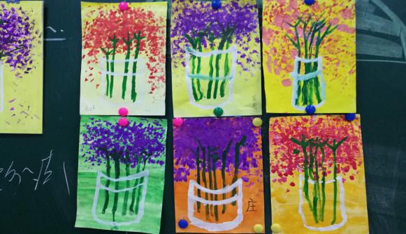課堂上,任課老師從起形、鋪底色、勾邊、點(diǎn)彩、細(xì)節(jié)刻畫(huà)等角度入手進(jìn)行指導(dǎo),引導(dǎo)孩子們描繪出花瓶、花身以及灑落的花瓣等輪廓,孩子們揮灑自如,留下了色彩斑斕的一筆,孩子們的精心之作得到了老師和家長(zhǎng)的肯定與贊美。