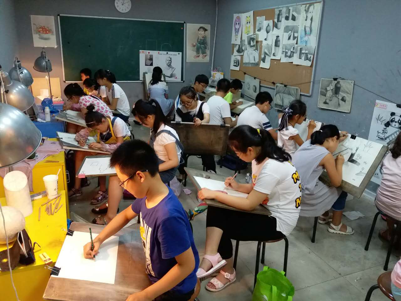 針對(duì)兒童畫(huà)班級(jí)和素描班級(jí)的考試級(jí)別的不同要求,點(diǎn)金美術(shù)的任課老師們悉心指導(dǎo),更進(jìn)一步強(qiáng)化學(xué)生的整體意識(shí)和結(jié)構(gòu)意識(shí)。對(duì)于基礎(chǔ)不同、考試級(jí)別不同的學(xué)生,任課老師從學(xué)員的角度出發(fā),有的放矢,在培養(yǎng)學(xué)員繪畫(huà)技能的同時(shí),有意識(shí)的引導(dǎo)孩子們認(rèn)識(shí)水平和藝術(shù)修養(yǎng)的提升。而孩子們也投入到緊張的備戰(zhàn)狀態(tài)中,課上學(xué)習(xí)課后練習(xí),嚴(yán)陣以待。