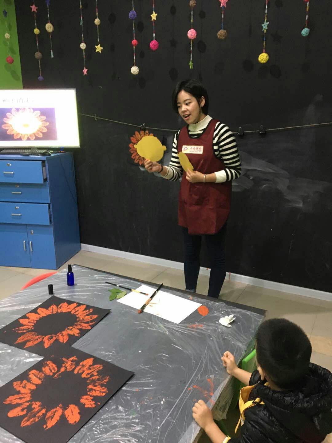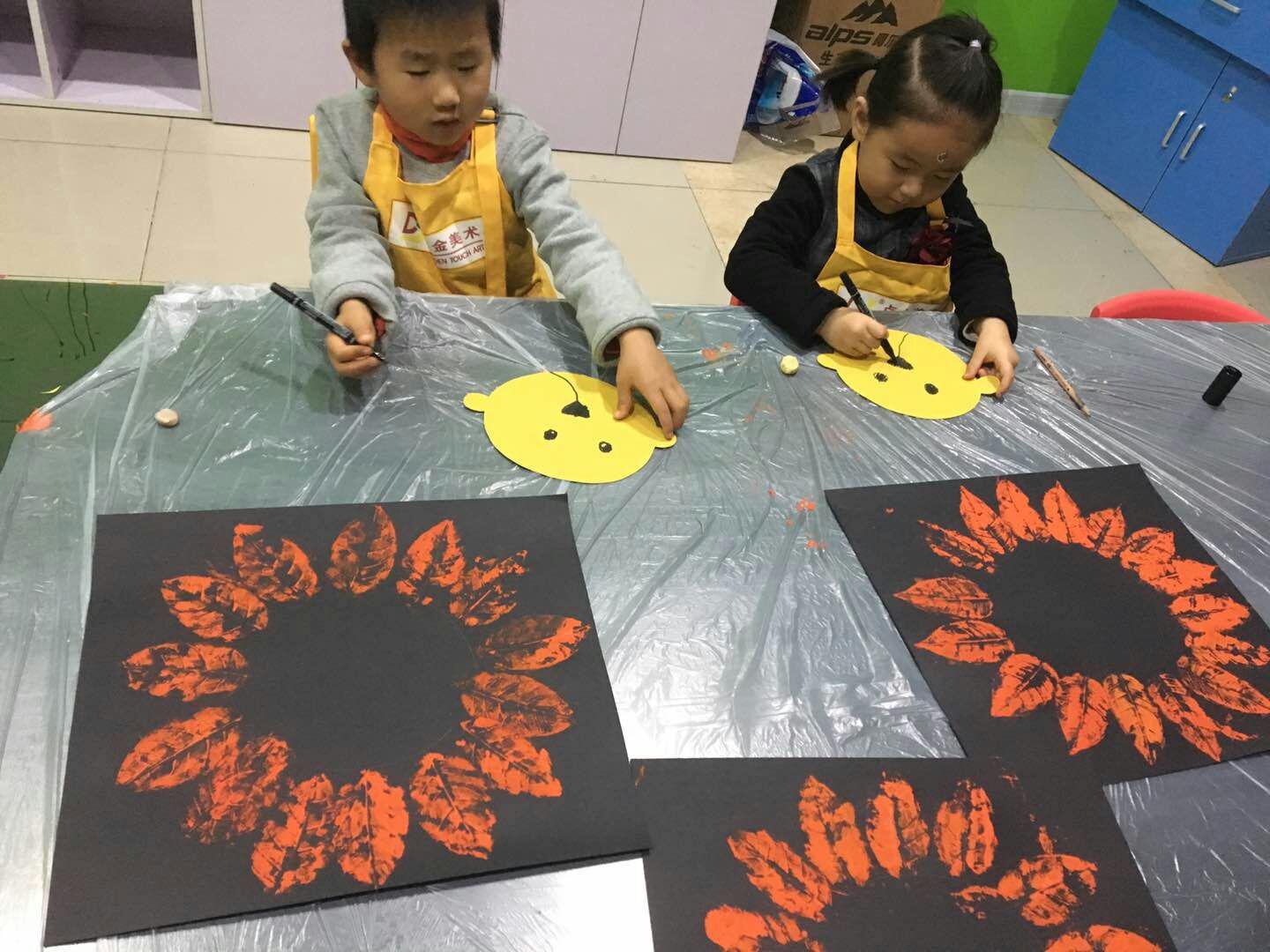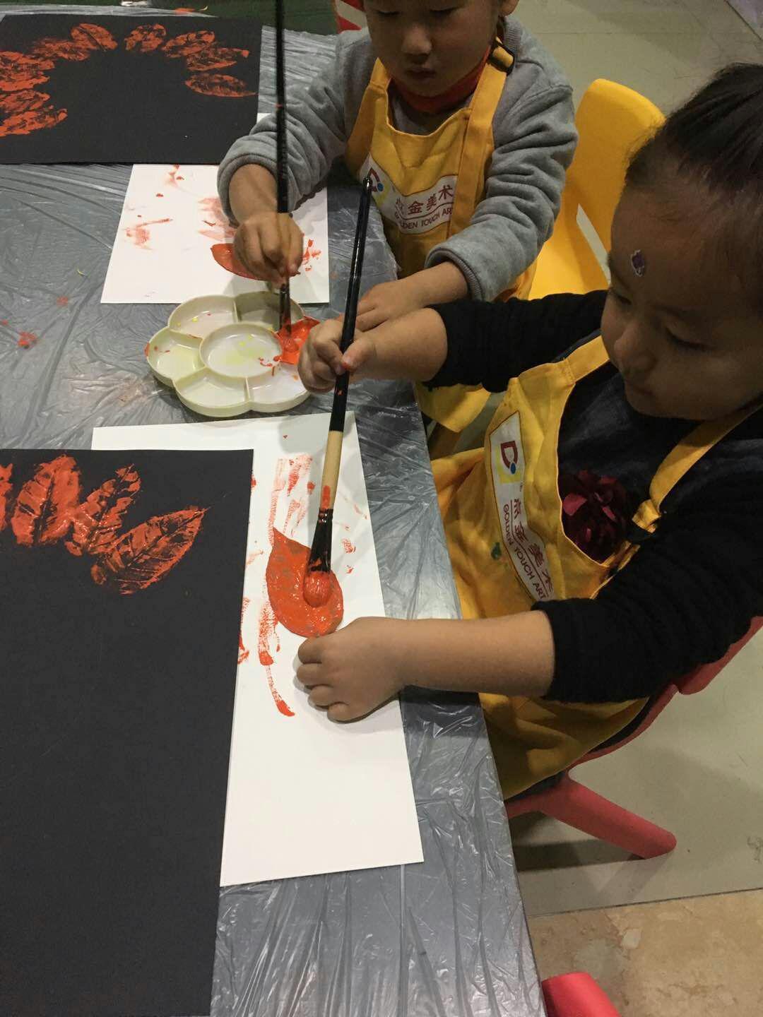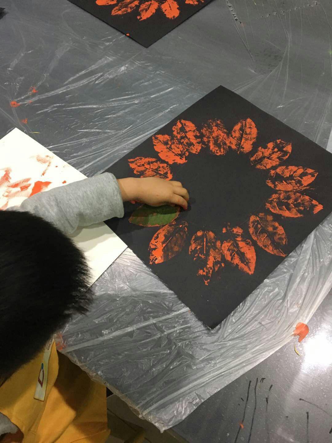 樹葉一片一片的飄落,飛到孩子們的畫紙前。即墨校區(qū)創(chuàng)意啟蒙班12班的孩子們在老師的引導下,用拓印的方法將樹葉一片片印下來,利用樹葉的紋路在紙上表現(xiàn)出意想不到的機理效果,好玩的樹葉拓印畫課程,教導著孩子們用另一種方式欣賞大自然。