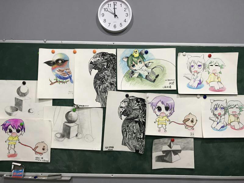 點金美術(shù)即墨教學(xué)基地動漫課堂上,孩子們興趣極濃,他們學(xué)的主動、學(xué)的輕松、學(xué)的高興。任課老師通過動漫卡通畫讓學(xué)生們獲得美術(shù)繪畫技巧的同時,也讓然了解一點藝術(shù)分析的方法,使他們了解透視原理,形象繪制以及比例關(guān)系,遮擋前后關(guān)系等等,學(xué)會一些構(gòu)圖的技巧。整個過程使學(xué)生在學(xué)到彩鉛畫的基本知識、基本技巧的同時,審美素養(yǎng)得以逐步提高,創(chuàng)新思維得以有效訓(xùn)練,整體素質(zhì)得以穩(wěn)步發(fā)展。