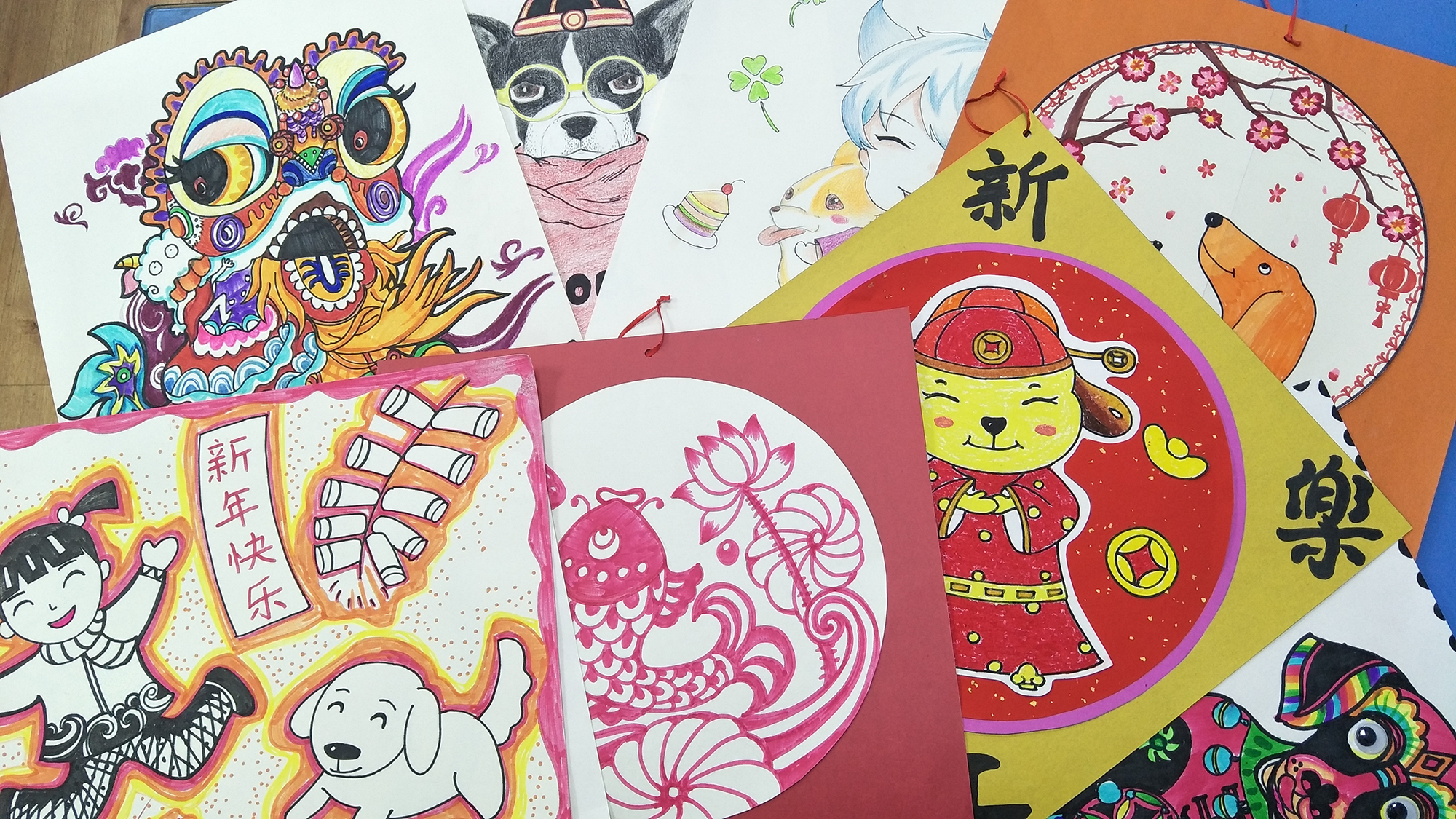 距離戊戌狗年春節(jié)還有10天,圍繞新春主題,點金美術(shù)四方校區(qū)的老師們將中國年傳統(tǒng)圖案紋樣與現(xiàn)代元素相結(jié)合,結(jié)合點金美術(shù)第五版原創(chuàng)少兒美術(shù)課程體系,設計出了豐富多樣的新年藝術(shù)主題課程。
