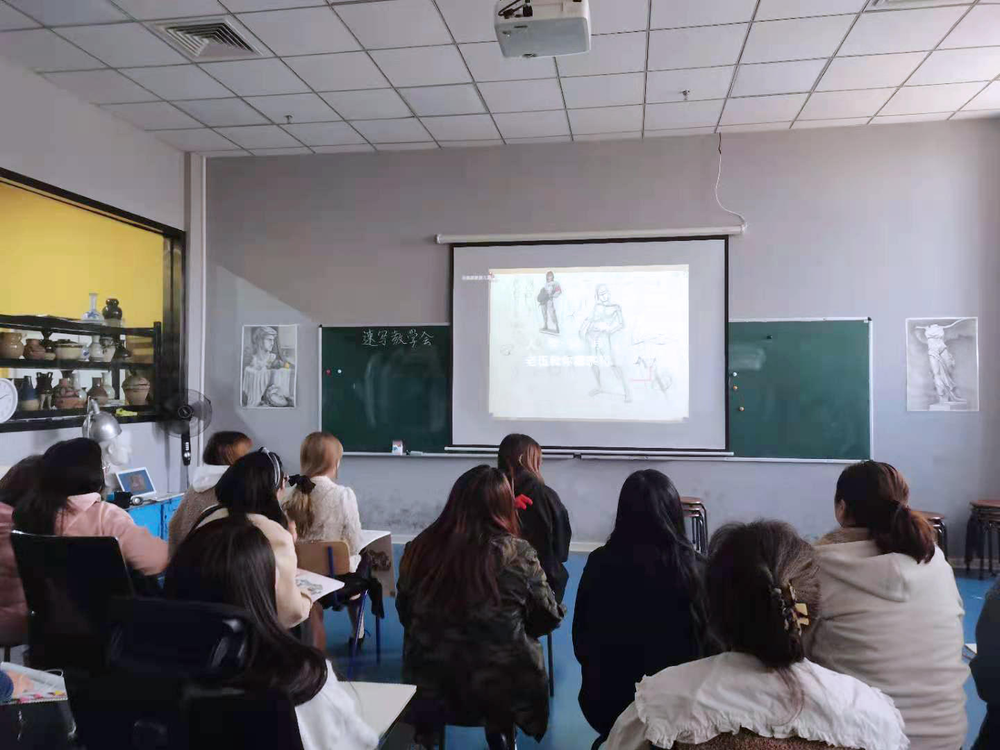 研討會在視頻觀摩中開始,老師們從“速寫怎么能畫好”、“怎么能快速提高”切入,圍繞構(gòu)圖、比例、用線等內(nèi)容展開切磋,得出提高速寫技巧的有效方式,并表示將妥善運(yùn)用到日常教學(xué)過程中。