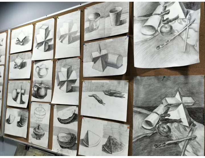 在教研過程中,為提升孩子們對素描的興趣,老師們盡量將抽象的素描理論知識通過孩子們日常生活中常見的事物進行類比,去繁從簡,幫助孩子們對復雜知識的理解。