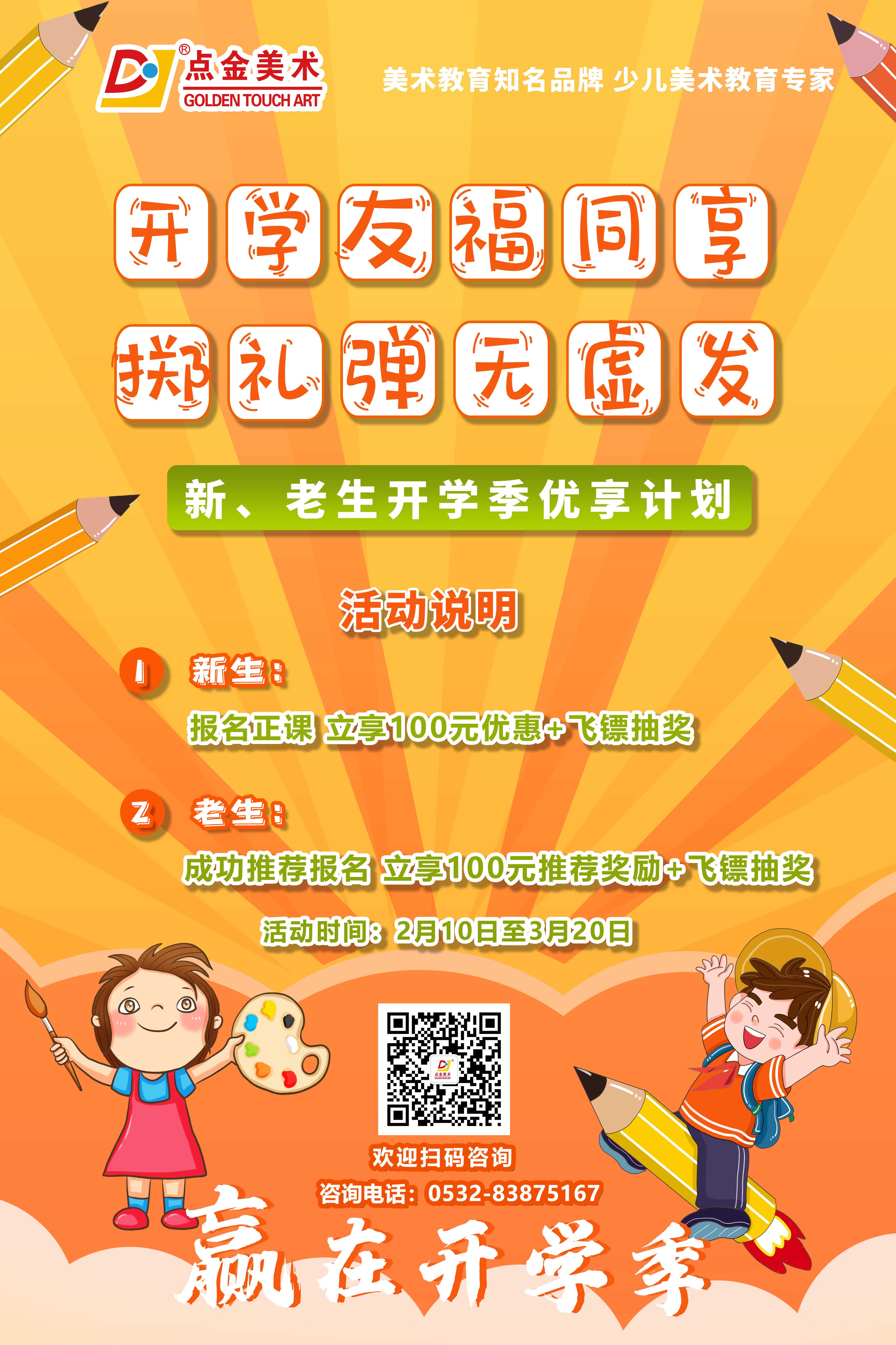 經(jīng)過了近一個(gè)多月的寒假,小學(xué)員們有沒有想念自己的小伙伴呢?在新的學(xué)期,也邀請(qǐng)你的小伙伴們一起到點(diǎn)金美術(shù)學(xué)習(xí)吧~齊聚點(diǎn)金美術(shù),新學(xué)期一起進(jìn)步!邀請(qǐng)好友更優(yōu)惠!