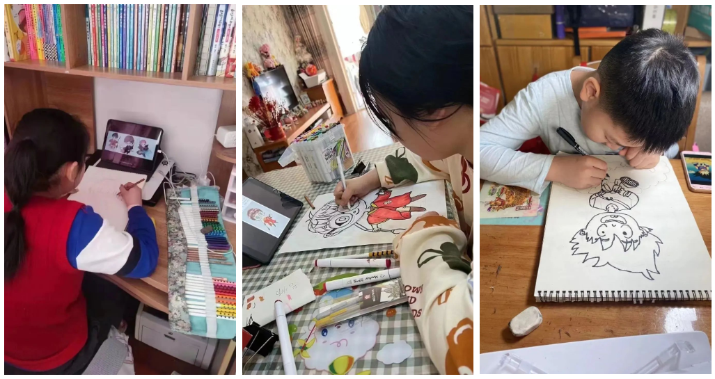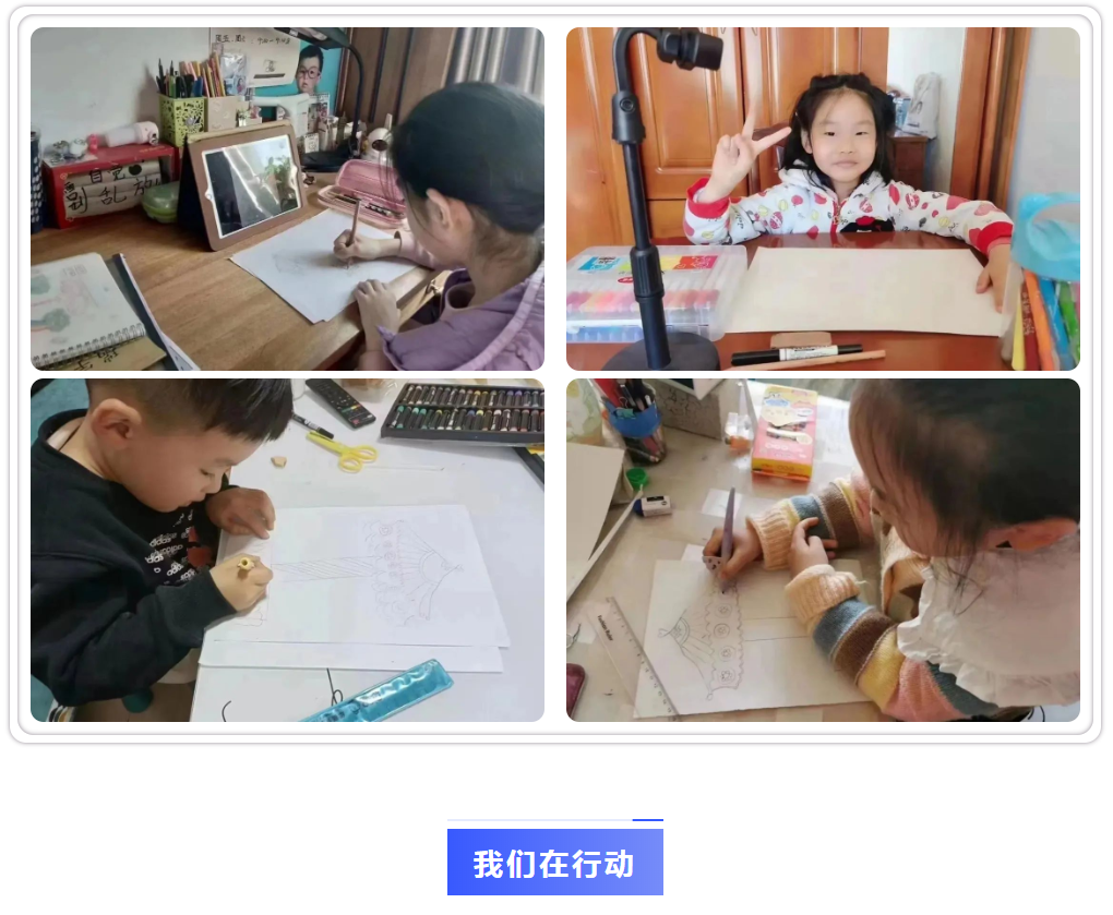 線上公益課程包含創(chuàng)意啟蒙班、暢想啟智班、知藝進(jìn)階班、繪畫空間站、專業(yè)繪畫班,與線下班級所匹配的課程體系,圖文并茂、結(jié)合視頻生動有趣。在此次疫情學(xué)員們居家期間,和盤托出,溫馨呈現(xiàn)。