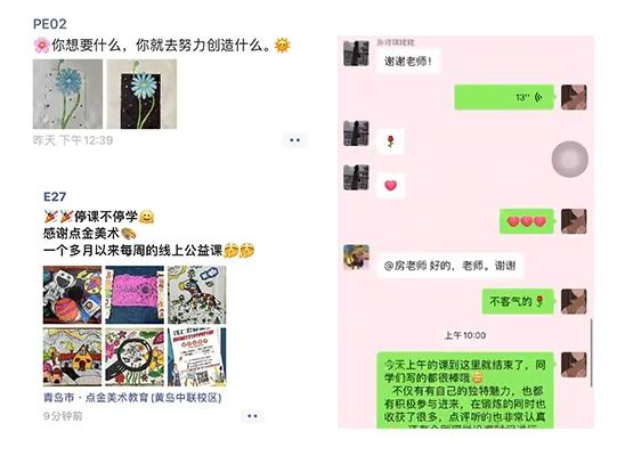 在這期間我們也收到了家長(zhǎng)朋友圈的轉(zhuǎn)發(fā)和好評(píng),這將是點(diǎn)金美術(shù)不斷前進(jìn)的動(dòng)力。點(diǎn)金美術(shù)也會(huì)將線上公益課繼續(xù)作為常態(tài)化工作,以在特殊的時(shí)期能夠溫馨呈現(xiàn)。
