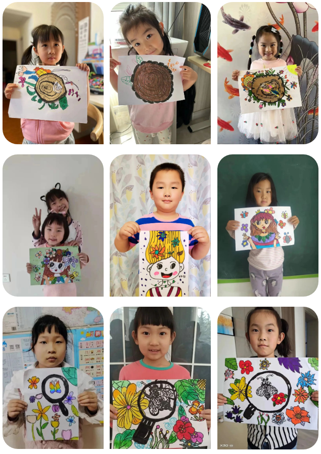欣欣向榮的春天,總是離不開各種花草,創(chuàng)意啟蒙班的小學(xué)員們用拼貼和繪畫結(jié)合的形式細(xì)數(shù)著春天成長(zhǎng)的年輪;暢想啟智班用擬人化的手法色彩與線描相結(jié)合將春天化作一個(gè)活潑嬌美的小女孩;知藝進(jìn)階班用視覺對(duì)比的方法發(fā)現(xiàn)了隱藏在春天里的小秘密。
