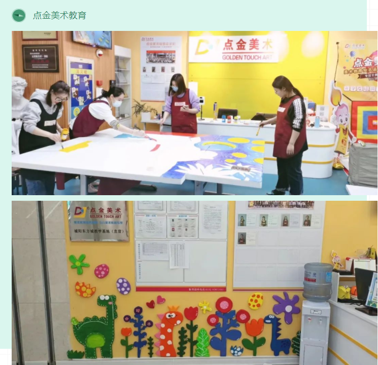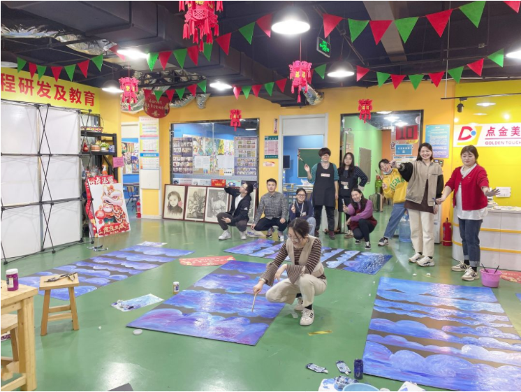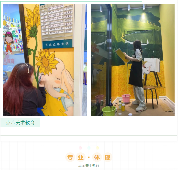 點(diǎn)金美術(shù)注重課程的研發(fā),磨煉老師們的教學(xué)能力,同時(shí)也非常重視老師們自身的繪畫創(chuàng)作能力。此次各校區(qū)大規(guī)模的環(huán)創(chuàng)活動(dòng),也正是老師們?cè)鷮?shí)基本功的體現(xiàn),從環(huán)創(chuàng)上帶給學(xué)員榜樣的力量。