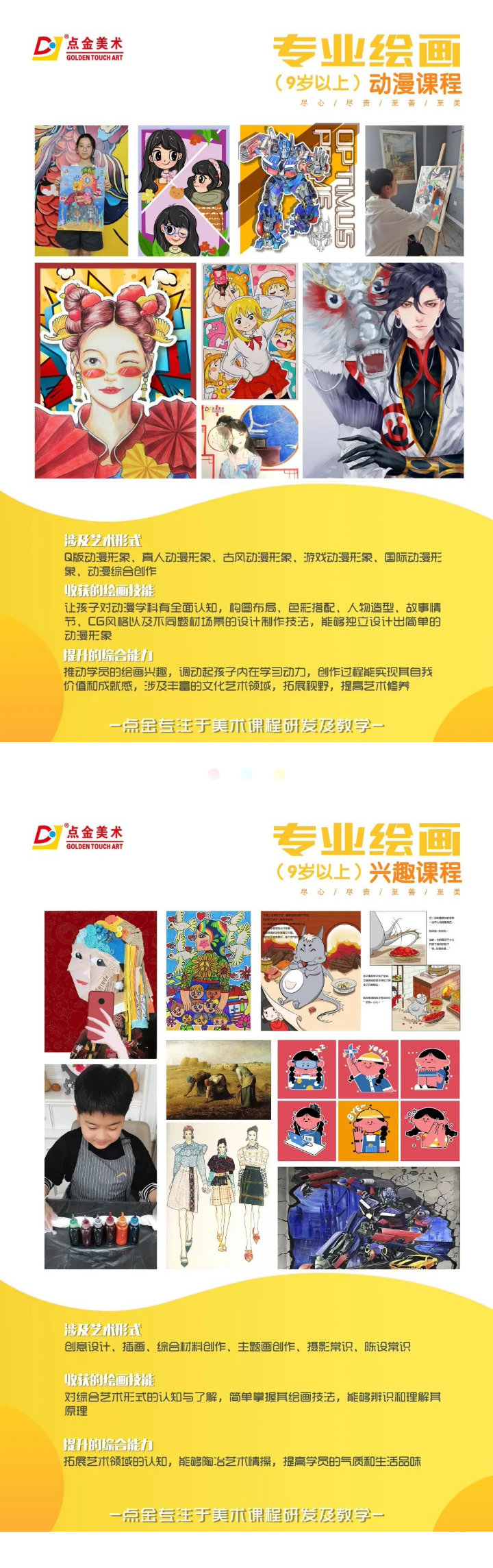 面對(duì)未來(lái),點(diǎn)金將繼續(xù)加大課程建設(shè)力度,推廣美育教育,盡心、盡責(zé)、至善、至美,用藝術(shù)點(diǎn)亮孩子們的生活!