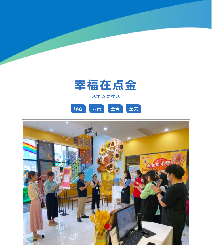 點(diǎn)金的發(fā)展和美育教育的推動(dòng)需要每一位教職員工竭盡全力地付出,而點(diǎn)金的關(guān)懷將進(jìn)一步促進(jìn)教職員工們以更好的精神狀態(tài)去付諸工作,促進(jìn)發(fā)展。