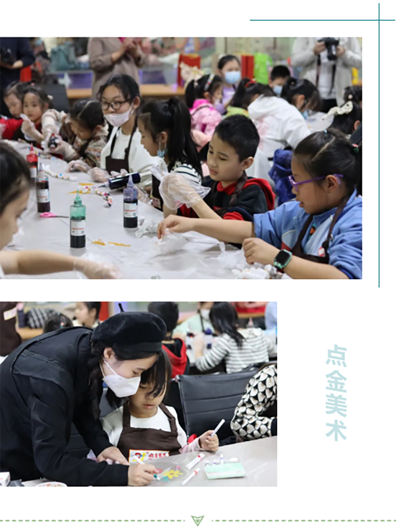 點(diǎn)金美術(shù)在吸納多元文化的同時,堅(jiān)持根植于中華民族深厚的文化土壤。在本次開幕式中,通過體驗(yàn)式的各種活動,幫助孩子們加深了對中國傳統(tǒng)節(jié)日的認(rèn)識,還從中體驗(yàn)到了民俗節(jié)日的快樂,培養(yǎng)有民族之情、有創(chuàng)新之能、有接納胸懷的和樂、健康、自信的中國兒童。