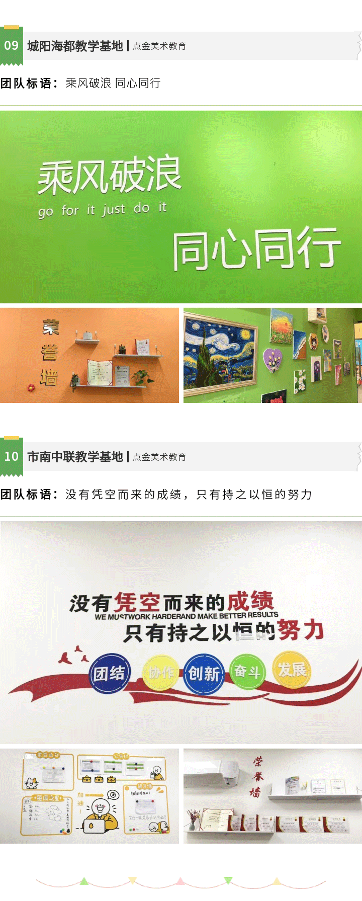 在祝賀各個(gè)獲獎(jiǎng)的教學(xué)基地的同時(shí),也讓我們走進(jìn)點(diǎn)金美術(shù)的教學(xué)基地,回顧部分校區(qū)老師們的辦公室文化設(shè)計(jì)成果。