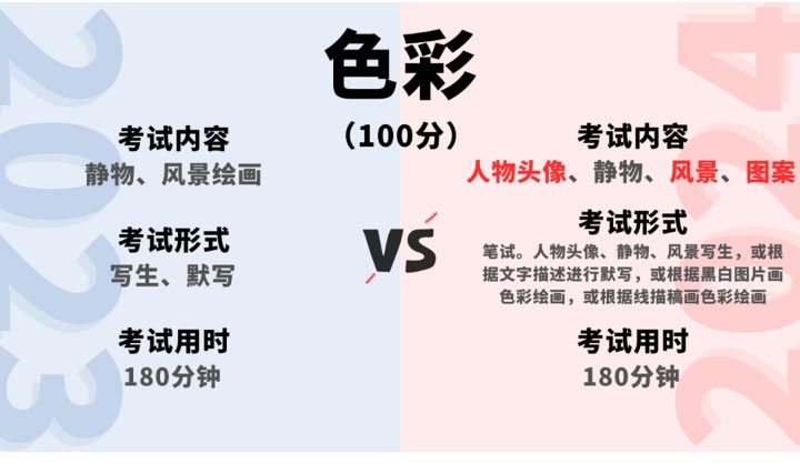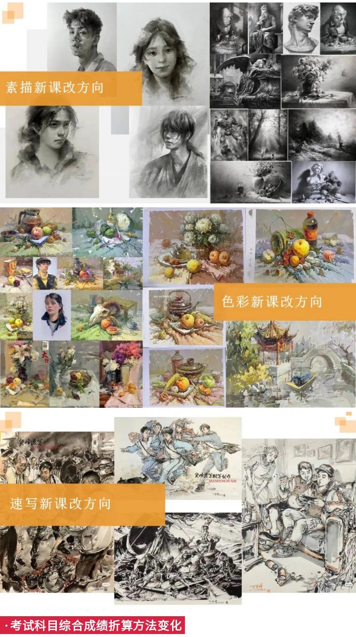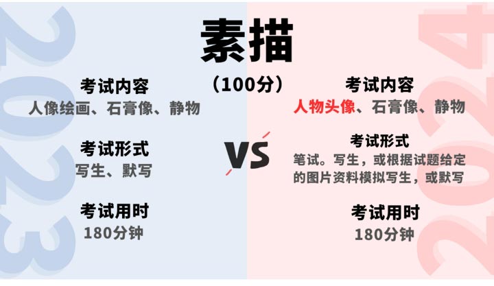 考試內(nèi)容增加了人物頭像、風(fēng)景等,考試形式不再是單一的寫生默寫……
