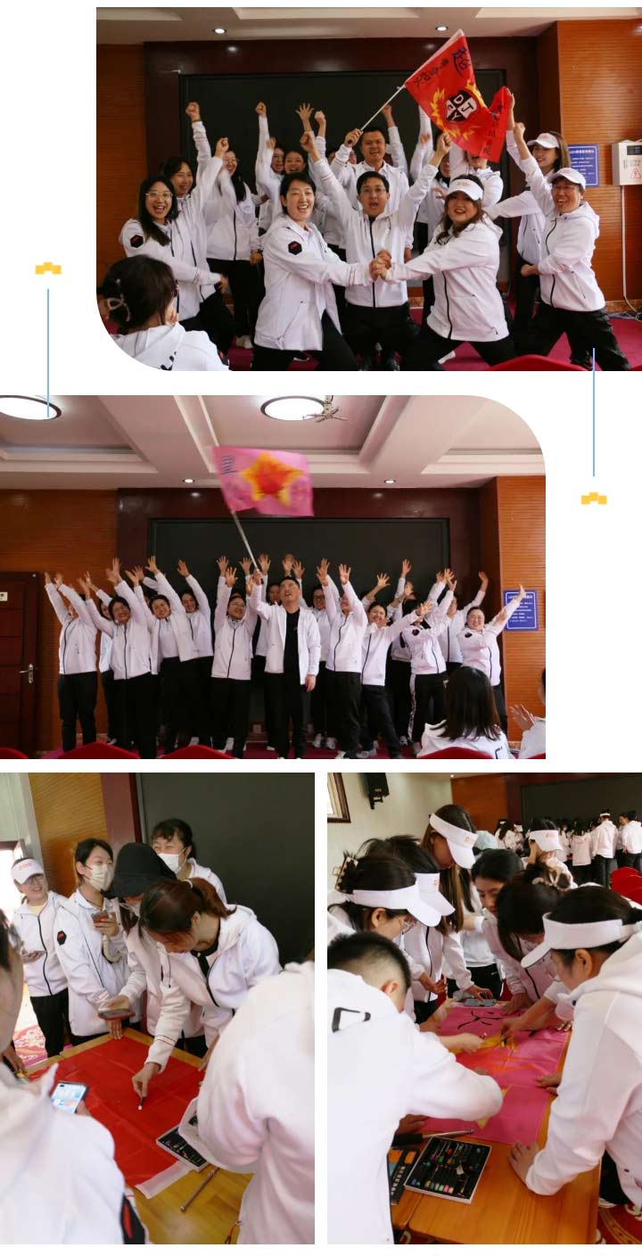 此次活動讓老師們走出教室、辦公室,在訓(xùn)練中鍛煉身體素質(zhì)、磨煉意志,融煉團隊。在拓展訓(xùn)練開始之前,老師們進行了分組,并利用自身專業(yè)優(yōu)勢,設(shè)計了隊旗、隊徽和口號,展現(xiàn)了點金人扎實的專業(yè)技能和良好的精神風(fēng)貌。