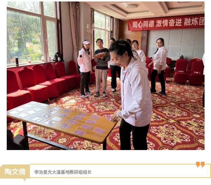 破冰、熱身中,通過幾組小游戲,讓來自不同校區(qū)、不同部門的老師快速建立默契,形成拓展隊意識。