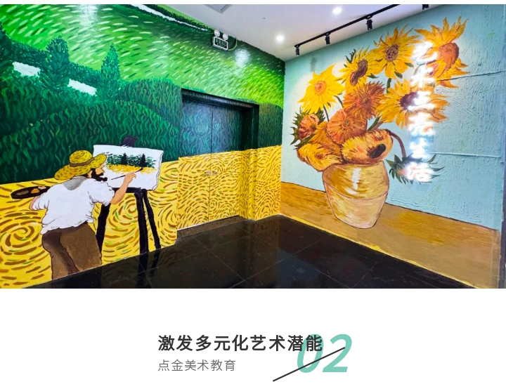 環(huán)境是美育教育重要的組成部分,點金美術(shù)始終秉承著“盡心、盡責(zé)、至善、至美”的辦學(xué)理念,通過定期對各個教學(xué)基地環(huán)創(chuàng)升級,讓每一位學(xué)員走進校區(qū)就能沉浸式感受藝術(shù)的魅力,在潛移默化中提升學(xué)員們的審美能力和藝術(shù)素養(yǎng)。