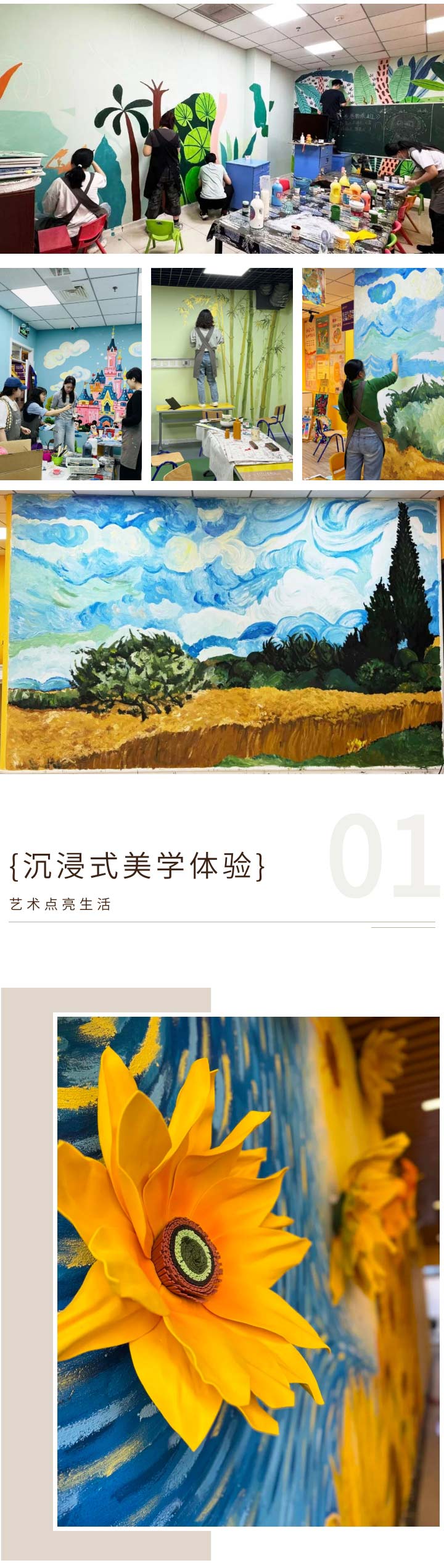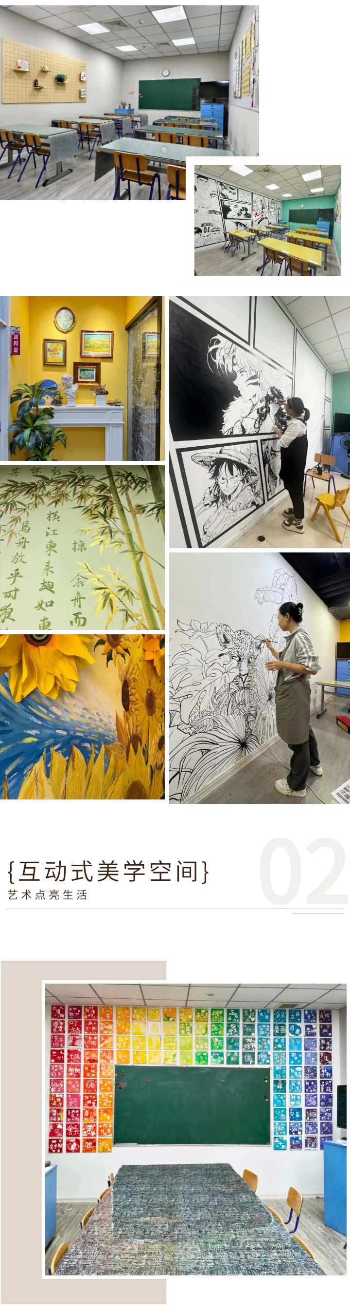 此次環(huán)境升級并非單純的視覺改造,更是點金美育理念的具象化表達,充滿活力的向日葵元素、孩子們喜歡的動漫元素、奇妙的自然元素等等,都在向孩子們傳達出“藝術(shù)點亮生活”的理念,通過積極、向上的引導(dǎo),用藝術(shù)環(huán)境提升孩子們的幸福感,幫助他們塑造健康、樂觀、積極的人生態(tài)度。