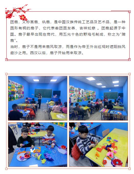 辭舊迎新的日子,怎能少了孩子們的歡聲笑語,帶著美好的心情,讓我們開始今天的課程分享。在2021年元旦來臨之際,點(diǎn)金美術(shù)新都心校區(qū)開展了“別樣游園,別樣圓”手工團(tuán)扇主題美術(shù)課程,共同迎接新一年的到來。