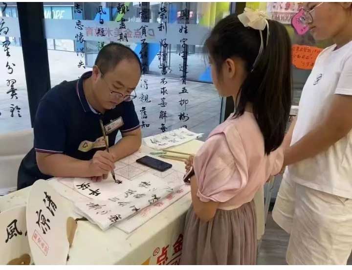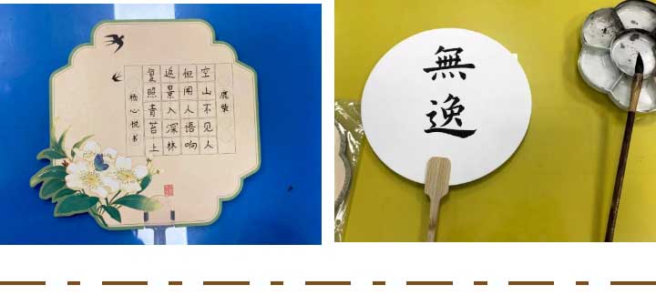 在這個(gè)多姿彩多彩的暑假中,點(diǎn)金美術(shù)嶗山大拇指教學(xué)基地,妙筆送清風(fēng),在小學(xué)員們學(xué)習(xí)藝術(shù)課程之余,為他們獻(xiàn)上團(tuán)扇、書(shū)簽、鑰匙扣等書(shū)法老師現(xiàn)場(chǎng)書(shū)寫(xiě)的的“文化盛宴”。