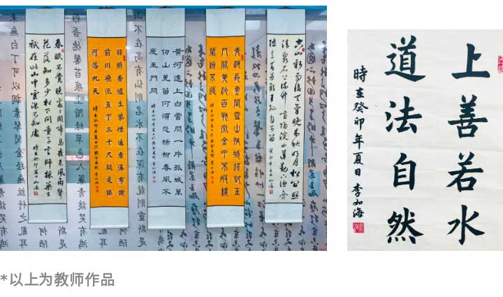 任課的老師均經(jīng)過(guò)層層選拔、培訓(xùn)上崗。且均為自幼學(xué)習(xí)書(shū)法,在書(shū)法上有所造詣。他們有的是各省市的書(shū)法家協(xié)會(huì)會(huì)員、有的在各大書(shū)法大賽中獲得獎(jiǎng)項(xiàng)并參展。