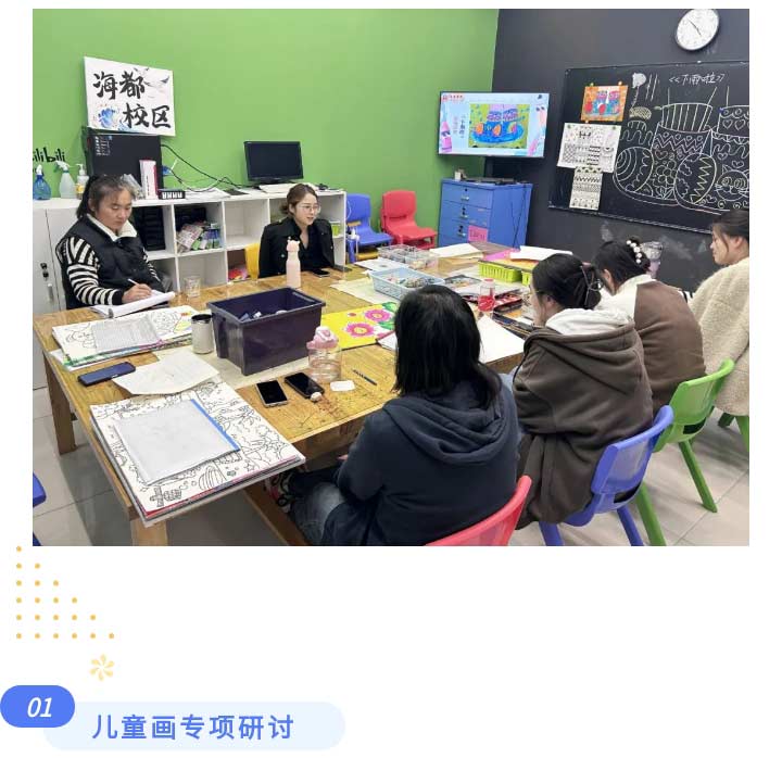 對(duì)于兒童畫(huà)班級(jí),老師們分享備課的細(xì)節(jié),探究在課堂上如何創(chuàng)新性引導(dǎo),提升學(xué)員的學(xué)習(xí)興趣。