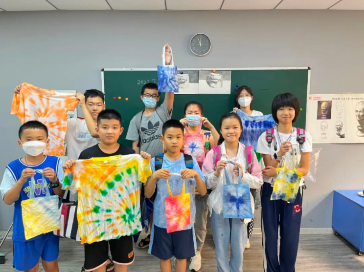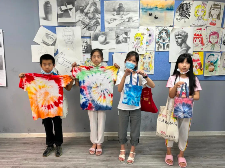 臺東校區(qū)老師們在暑假為學員們安排了有趣的扎染課程。傳統(tǒng)與現(xiàn)代,藝術與文化,不經(jīng)意的碰撞,在白布上渲染出了獨屬于每個同學自己的的色彩,這是扎染的魅力,更是一件獨一無二的藝術品。