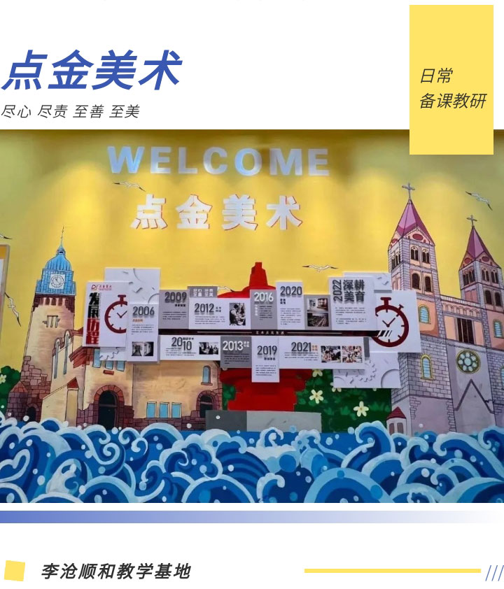 不僅是李滄順和教學(xué)基地,這樣的教研活動(dòng)在各個(gè)校區(qū)都在有序的開(kāi)展,點(diǎn)金美術(shù)會(huì)始終秉承“盡心、盡責(zé)、至善、至美”的辦學(xué)理念,用藝術(shù)點(diǎn)亮萬(wàn)家學(xué)子的生活。