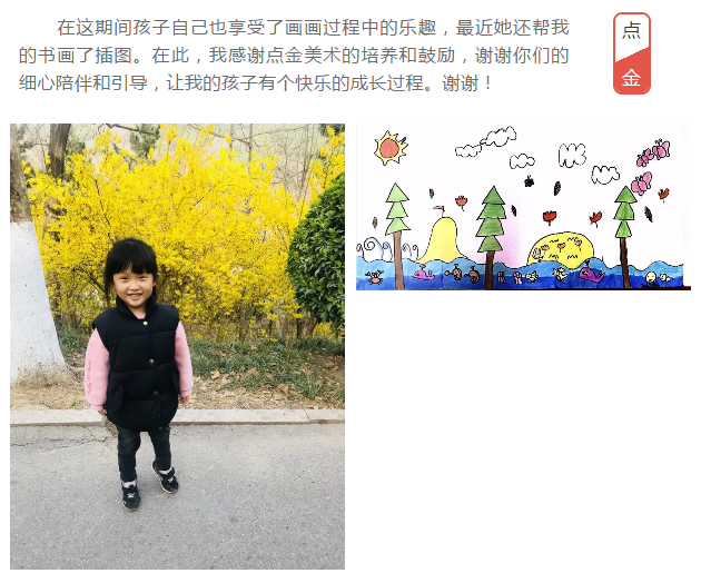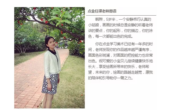 她現(xiàn)在已經(jīng)對(duì)畫(huà)畫(huà)產(chǎn)生了濃厚的興趣,通過(guò)1年多對(duì)畫(huà)畫(huà)的學(xué)習(xí),培養(yǎng)了孩子自己豐富的想象力和較好的耐性,現(xiàn)在每天發(fā)現(xiàn)的美好事物都能夠通過(guò)畫(huà)畫(huà)保存下美好的記憶,畫(huà)畫(huà)的小冊(cè)子已經(jīng)有10余本了。